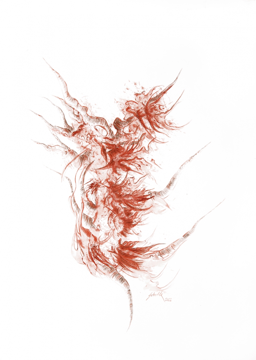40x30 2022 Roetel und Buntstift auf Papier